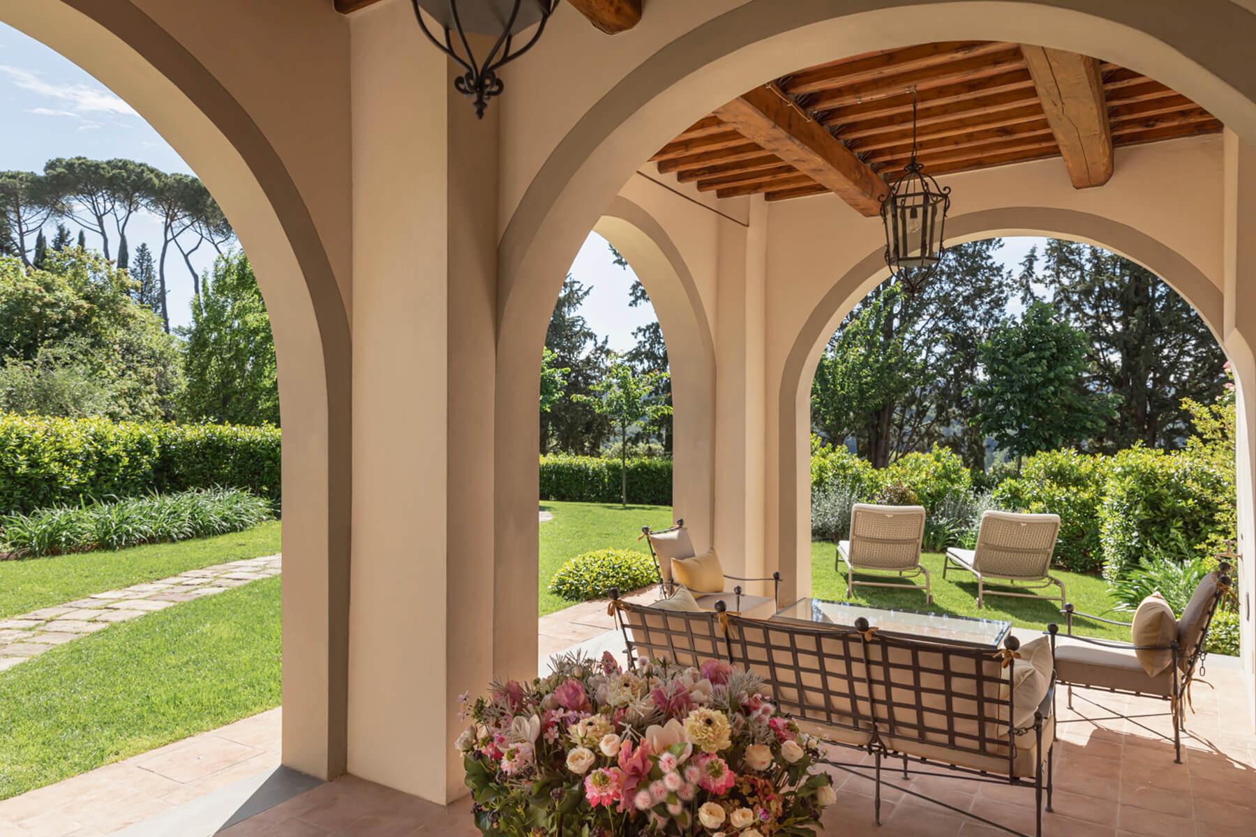 One particular room enjoys a view that opens onto the spectacle of Florence and the soft surrounding hills. And everything is topped off with a harmonious garden.