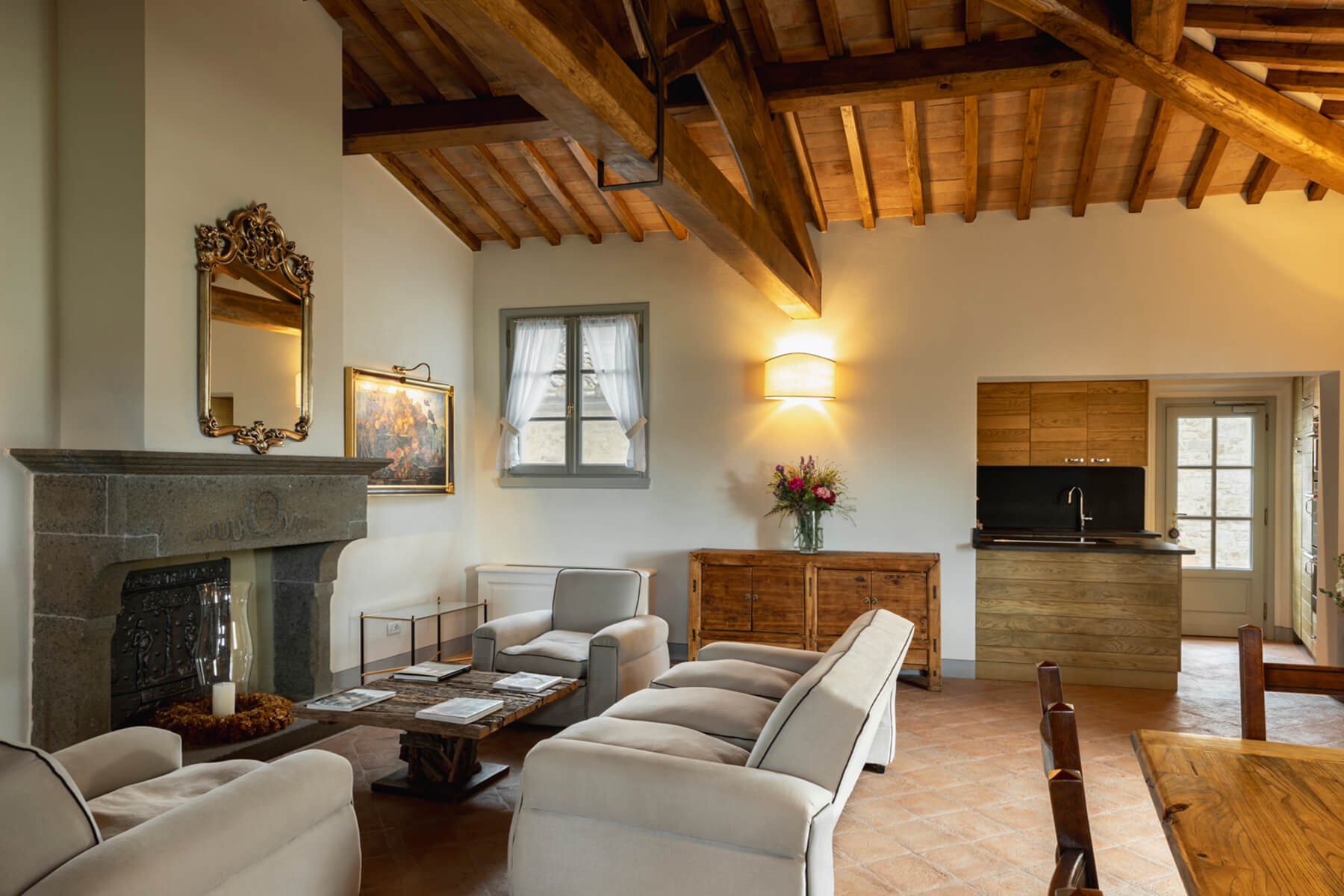 Respectful of the original style, the restoration offers sober elegance and impeccable comfort, enhanced by the typical materials of the ancient Tuscan farmhouses, such as Macigno stone and the famous Impruneta terracotta.
