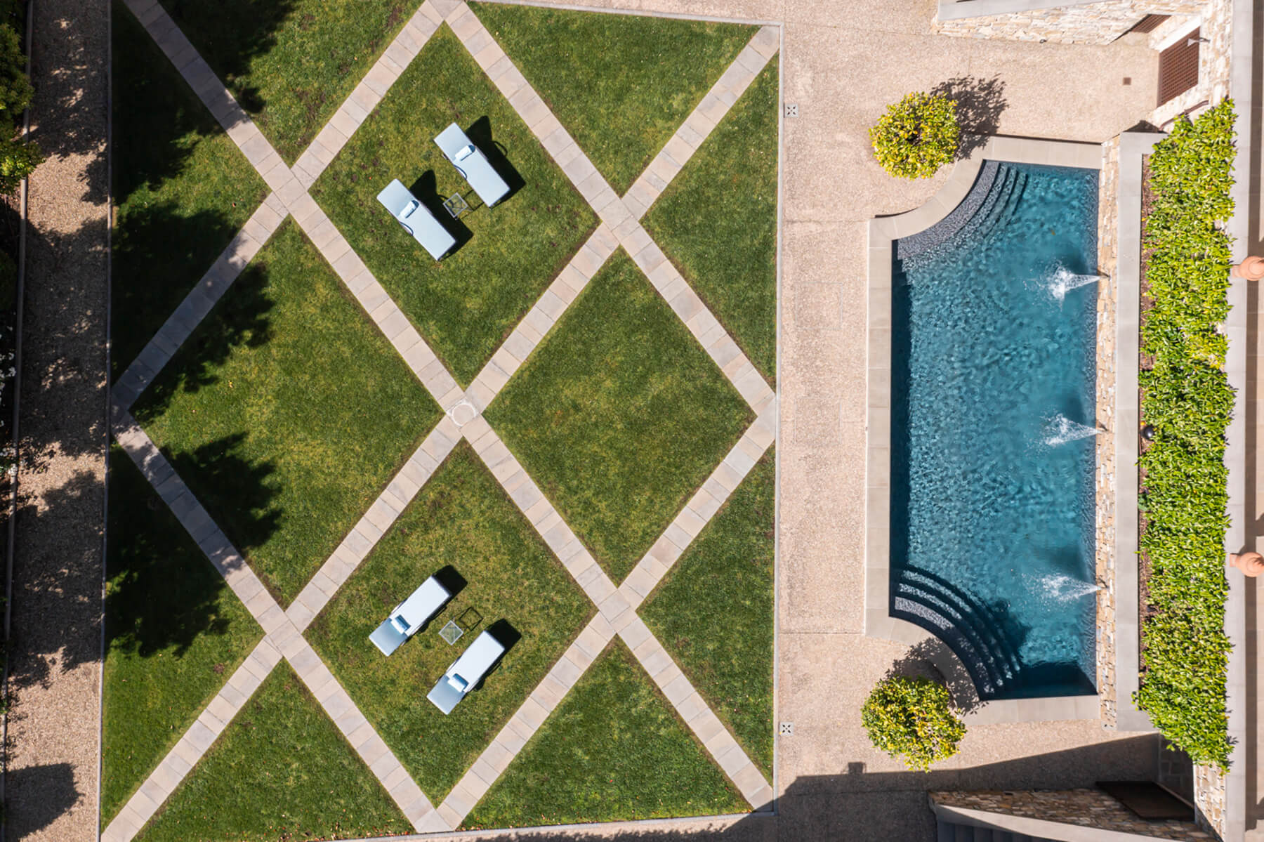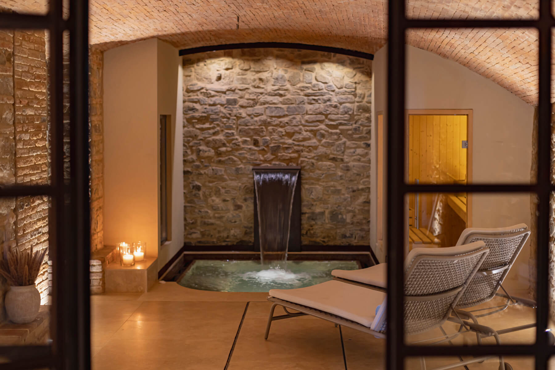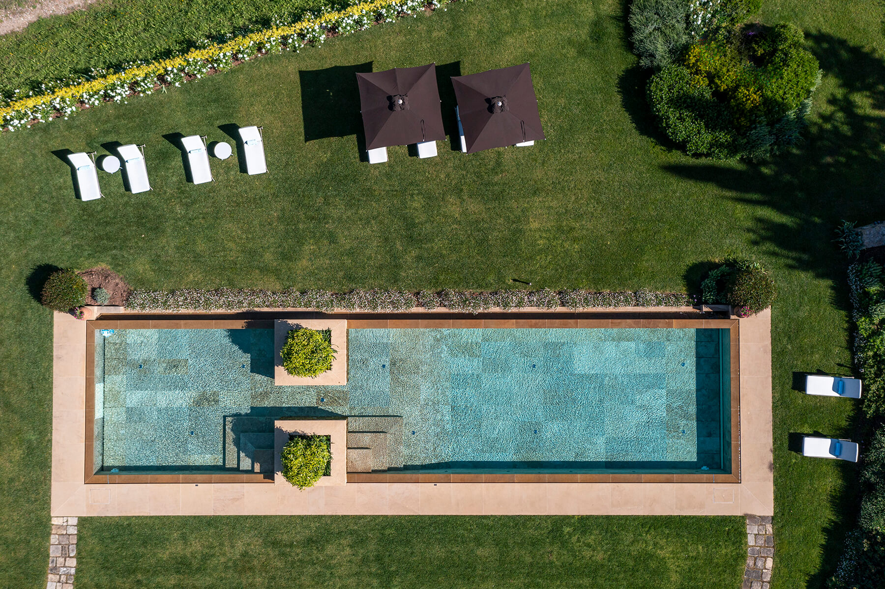 A pool of crystal clear water in the middle of the park extends for 150 square meters providing a refreshing relaxation outlet in the frame of an extraordinary landscape. In the eastern part of the park, an ancient restored bastion gave life to a natural viewpoint. The hamlet also includes a wellness centre, in the Renaissance villa's basement, and La Locanda, an exclusive restaurant in the estate's old building with a beautiful garden in front.