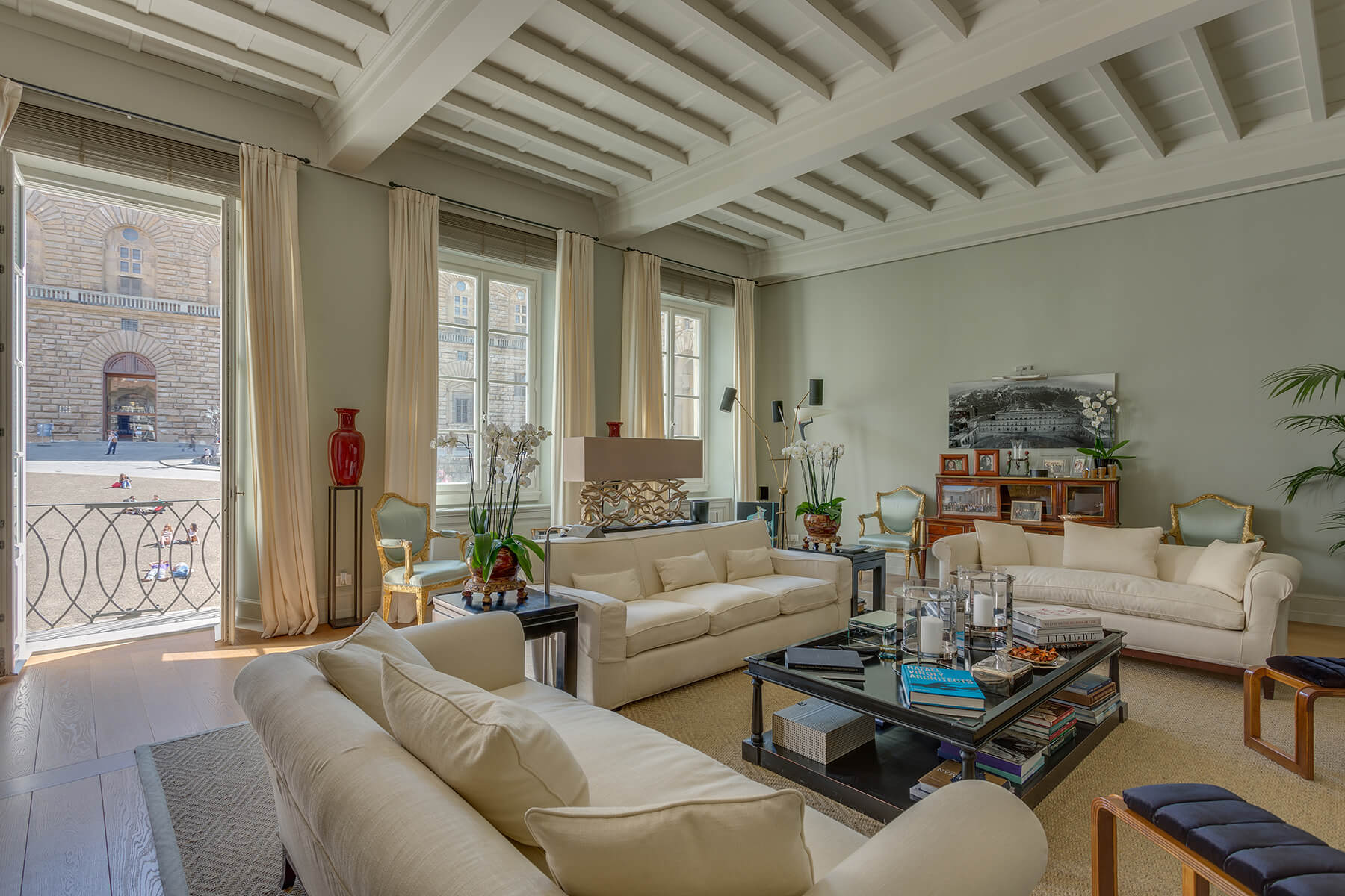 Oltrarno is a three-bedroom luxury residenza, spanning 250sqm, situated on the south side of the Arno River, overlooking Palazzo Pitti, and a short distance from the Ponte Vecchio.