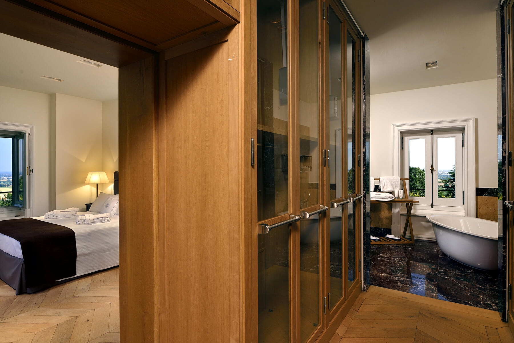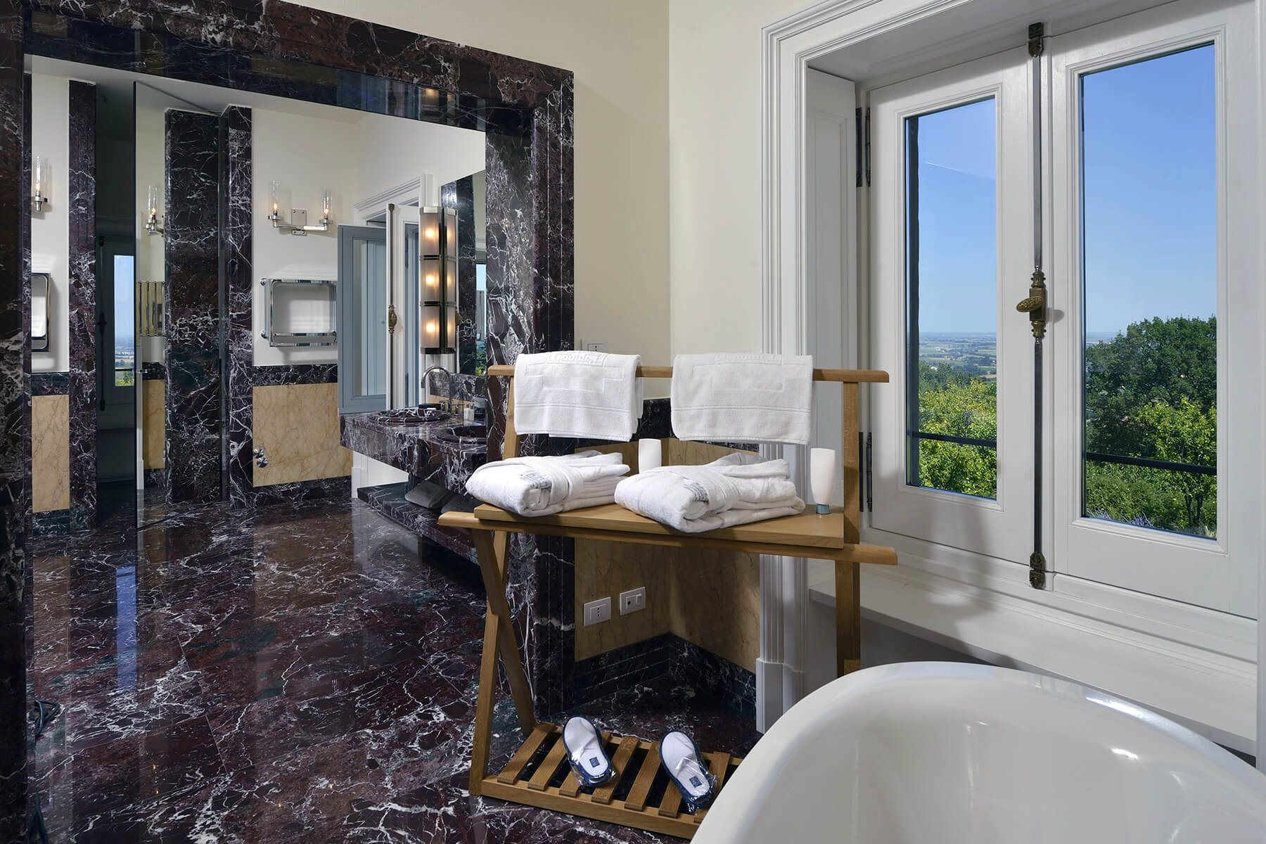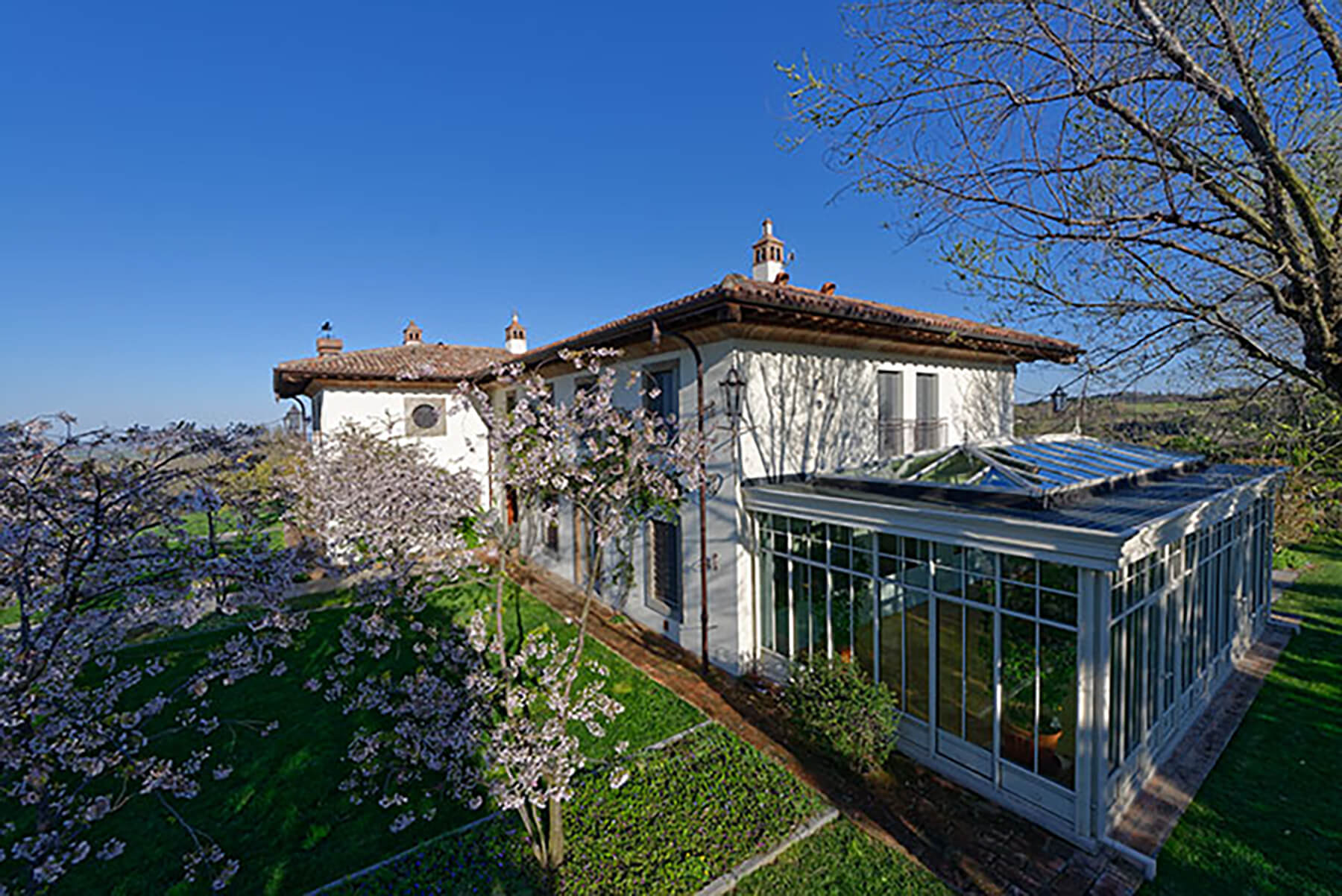 Villa Casia is an elegant private residence set in a privileged, tranquil, and panoramic location, with uninterrupted views of the Italian countryside in the green hills east of Bologna.