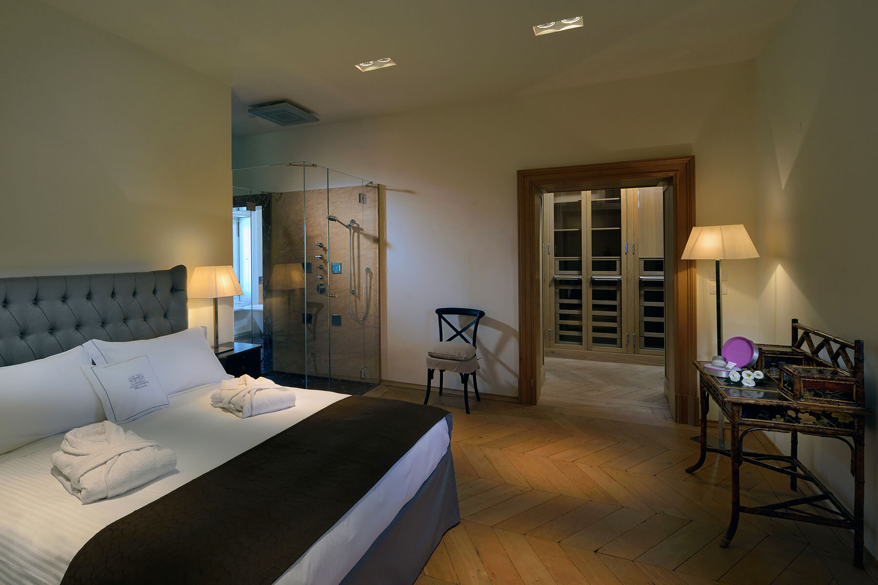 The villa’s 4 well-appointed stunning suites, with panoramic views, can comfortably accommodate up to 11 guests. Tastefully furnished and down to the finest details, from the luxurious marble bathrooms, exquisite parquet, and high-quality finishes, Villa Casia is impeccable and fit for royalty.