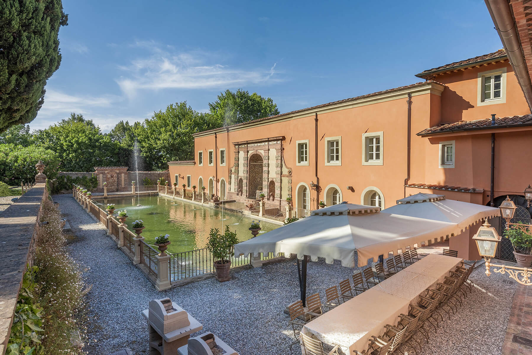 Today Villa Cosimo is an elegant and exclusive Tuscan retreat immersed in a splendid parkland of ornamental ponds and antique fountains, time-forgotten courtyards and lemon scented Italian gardens.