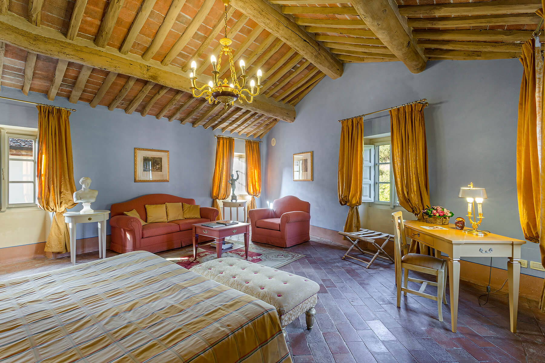 The 12 individually styled bedrooms, for up to 24 guests, are a reflection of gracious living blended discreetly with the typical Tuscan hamlet style of wood beamed ceilings, terracotta floors and warm, welcoming colours.