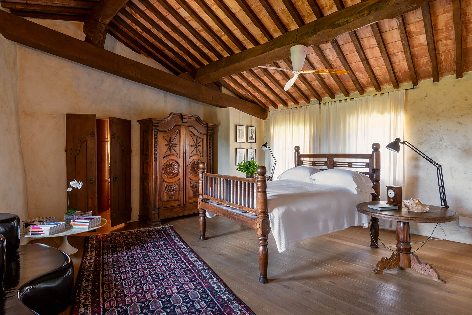 The castle’s nine sublime suites accommodate up to 22 guests and are all elegantly decorated, featuring the original stone and brick walls, and a tasteful mélange of antique and modern furniture. The most prestigious suite occupies an entire floor at the top of the castle and boasts stunning unique art pieces, a spacious living area with a fireplace, an Italian marble bathtub and a private outdoor terrace overlooking the castle’s central courtyard.