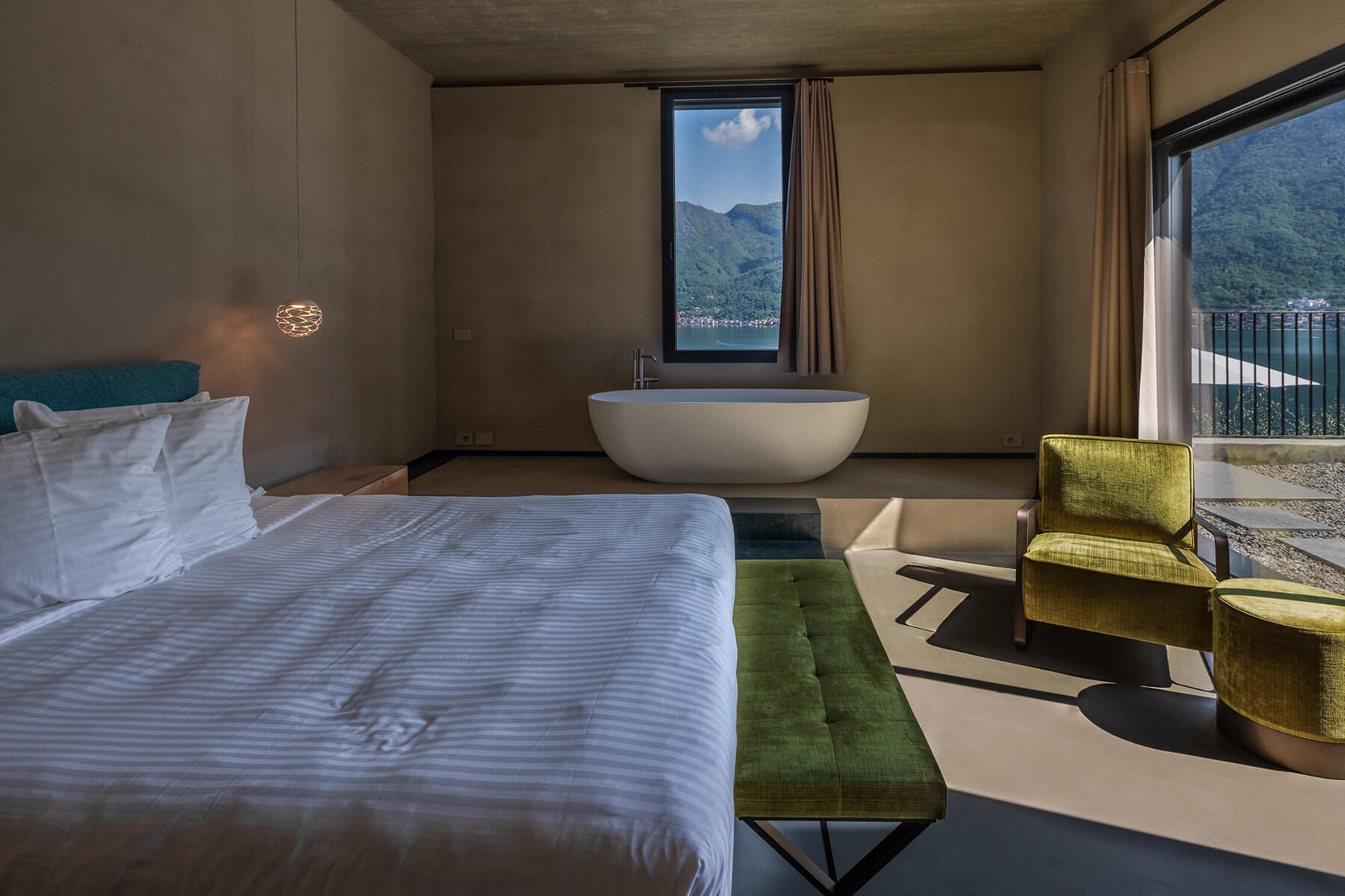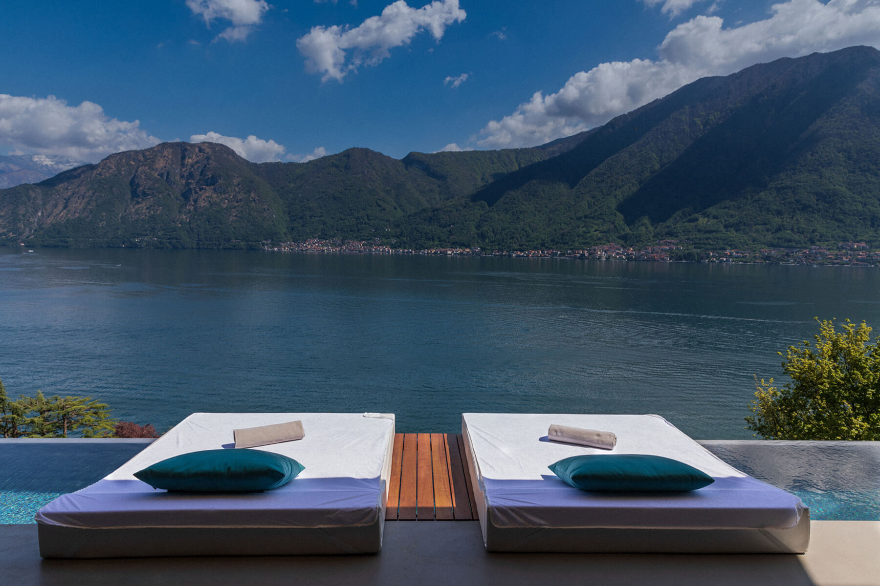 - Villa Molli’s oversized windows and glass doors, high ceilings, and open spaces combine to create a harmonious and serene atmosphere, boasting the best views of the lake and the spectacular mountain range embracing it.